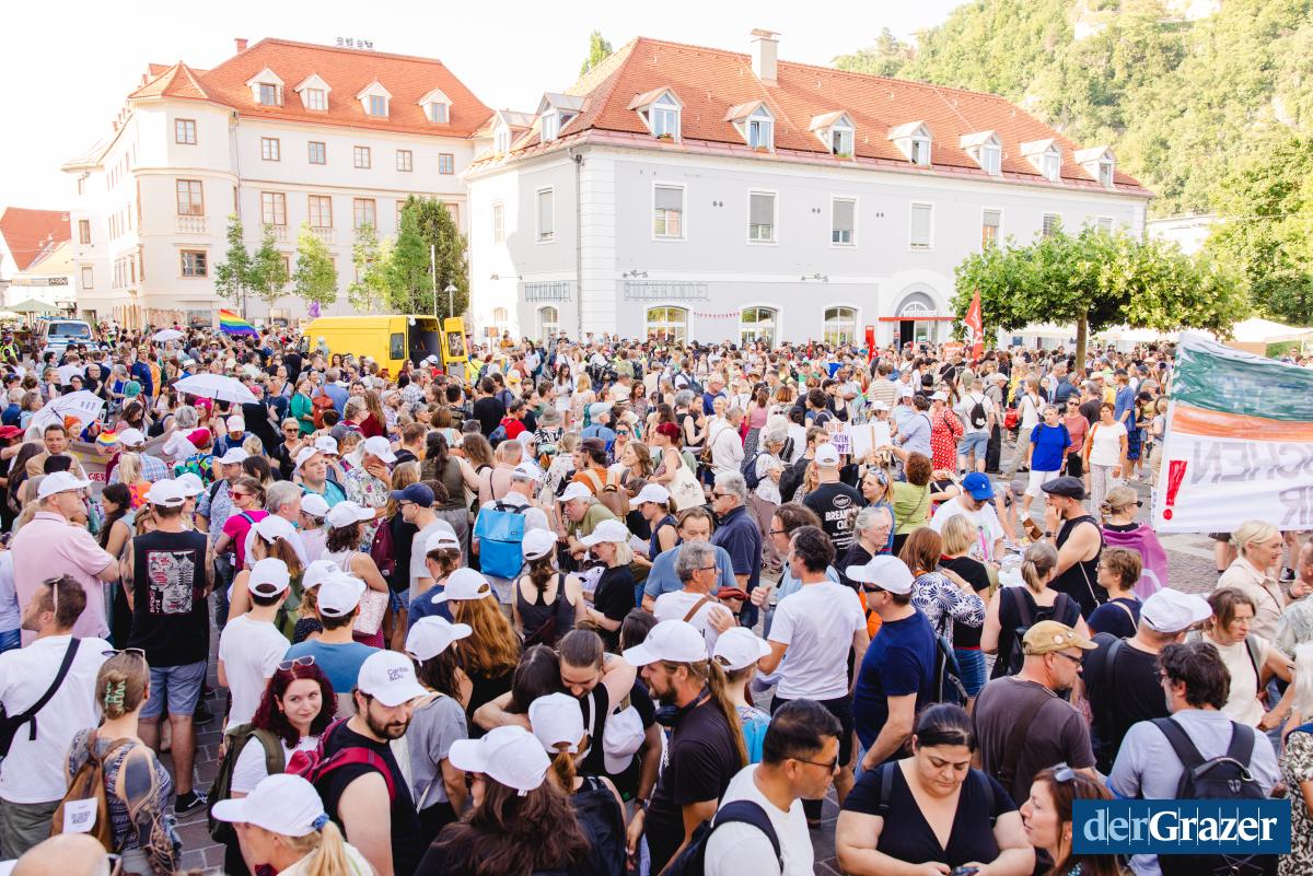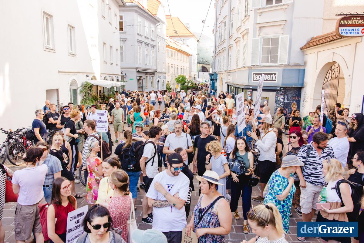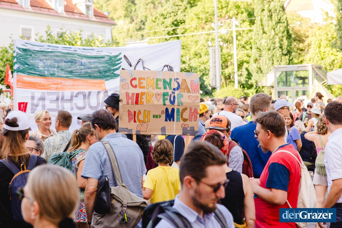 - Gestern Abend trafen sich rund 2000 Menschen zum Protest am Mariahilferplatz. Fotos: B. GASSER