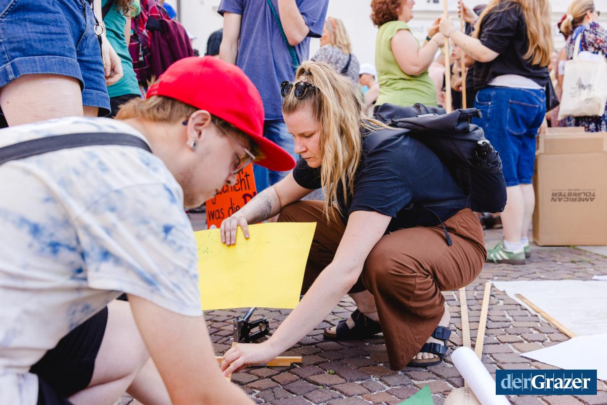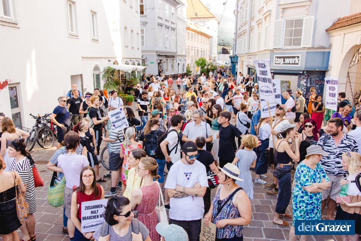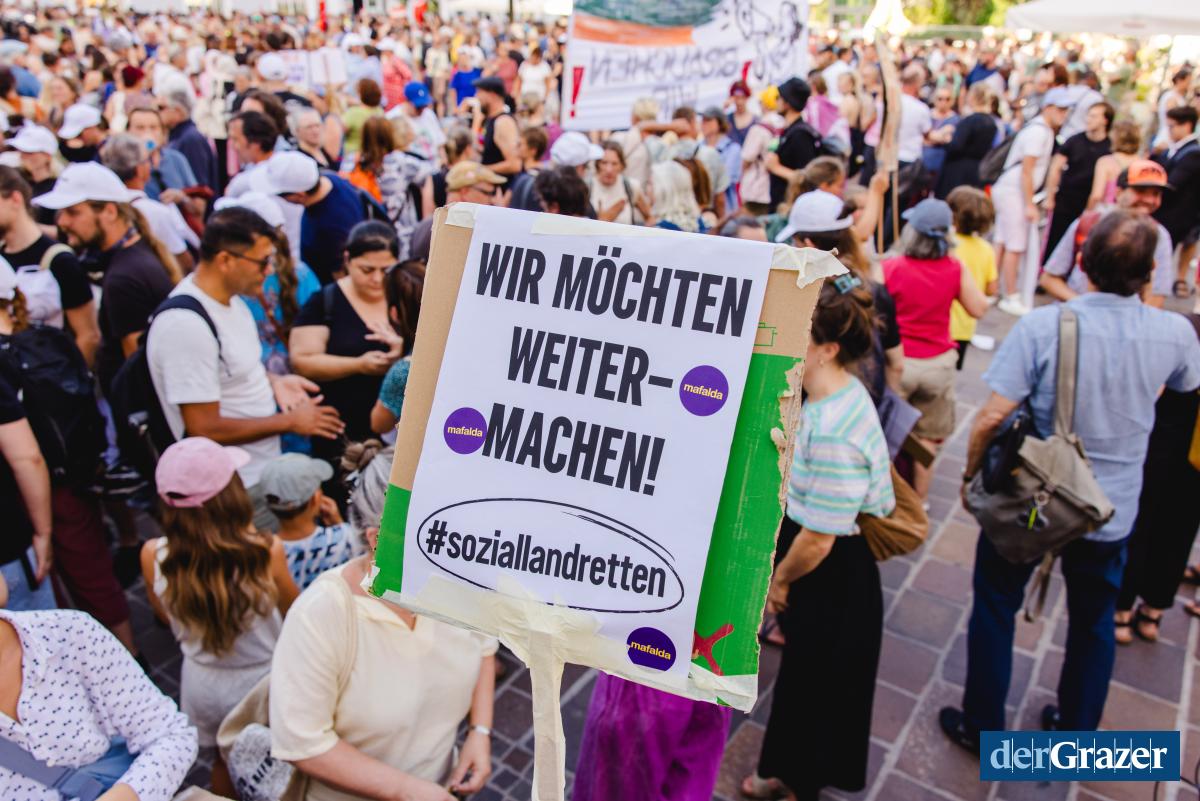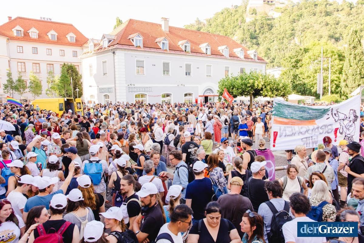 - Gestern Abend trafen sich rund 2000 Menschen zum Protest am Mariahilferplatz. Fotos: B. GASSER