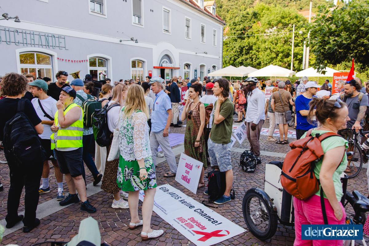 - Gestern Abend trafen sich rund 2000 Menschen zum Protest am Mariahilferplatz. Fotos: B. GASSER