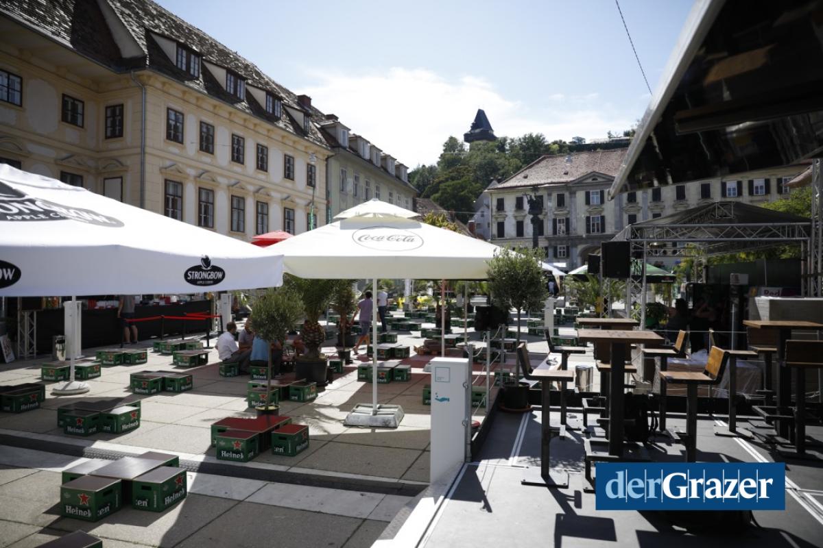 - Die Sommer-Lounge am Karmeliterplatz lädt ab sofort zu gemütlichen After-Work-Drinks. Fotos: LUEF
